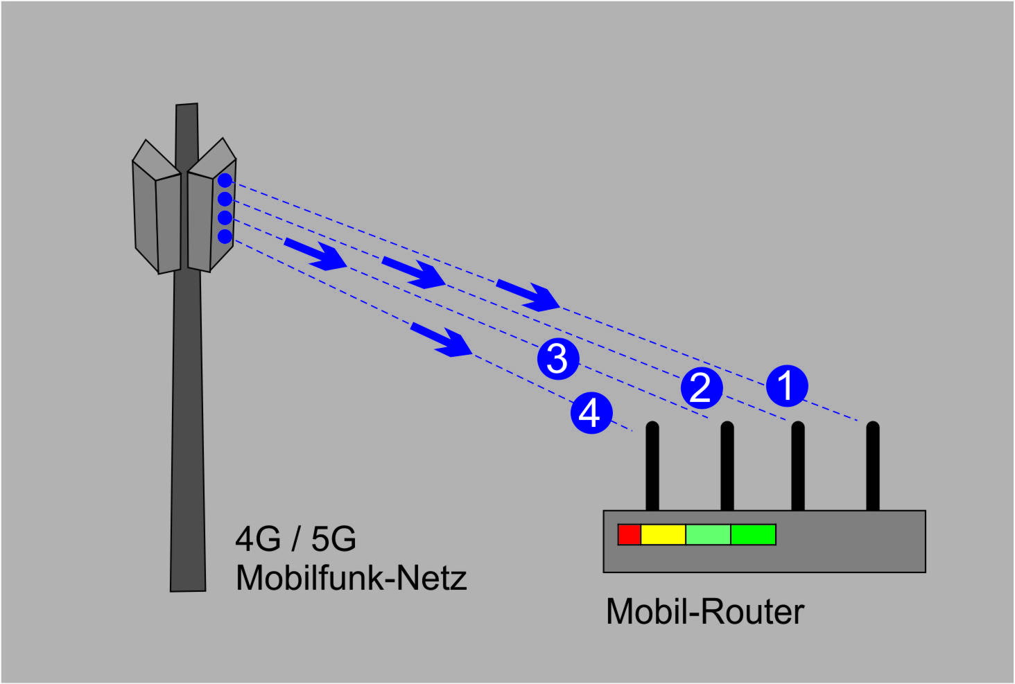 Multiple Input - Multiple Output. Auf 4 Übertragungssträngen.