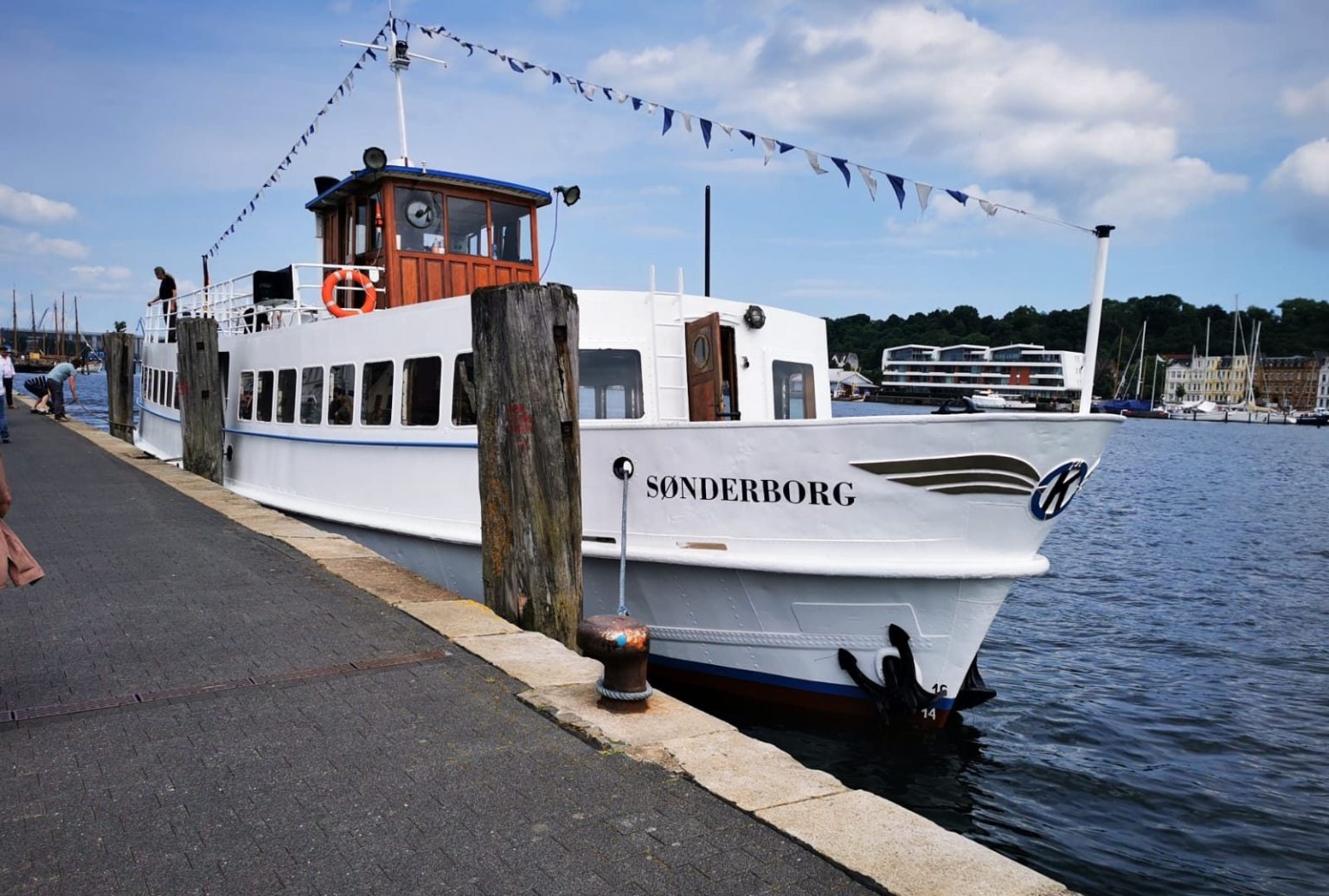 Wir fahren mit den Schiff auf der Flensburger Förde. Es geht vom Innenhafen nach Glücksburg, dann auf die dänische Seite zu den Ochseninseln und wieder zurück.